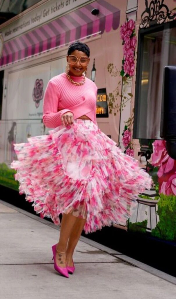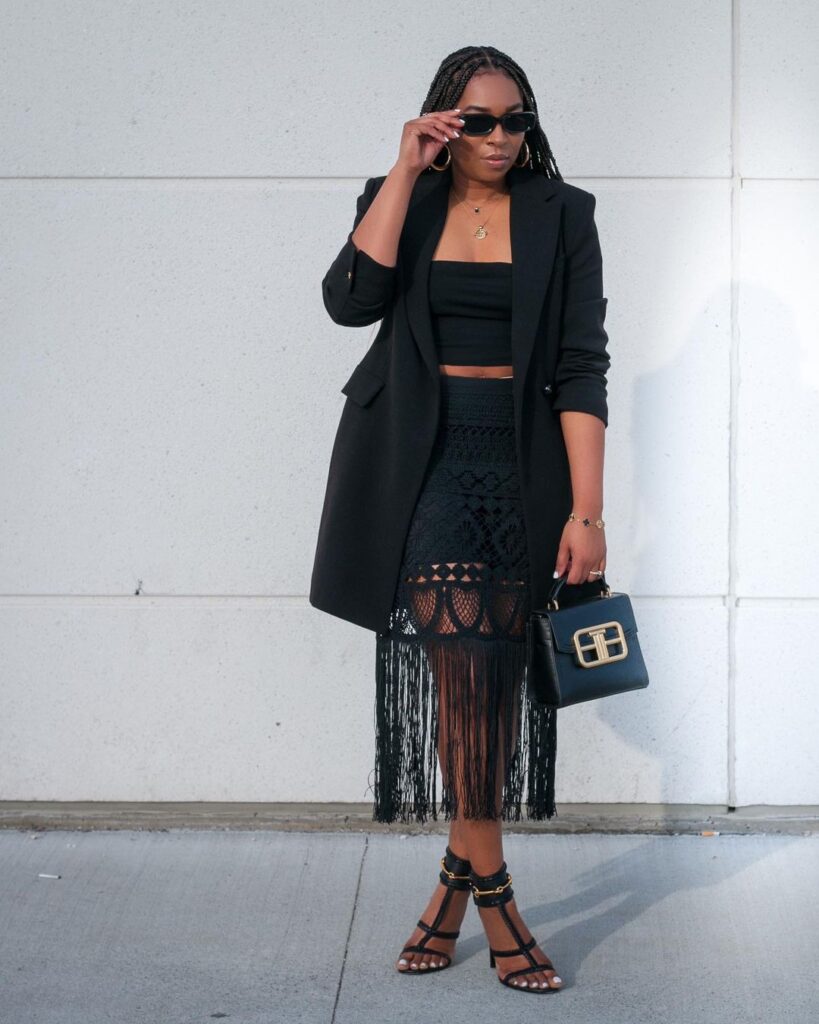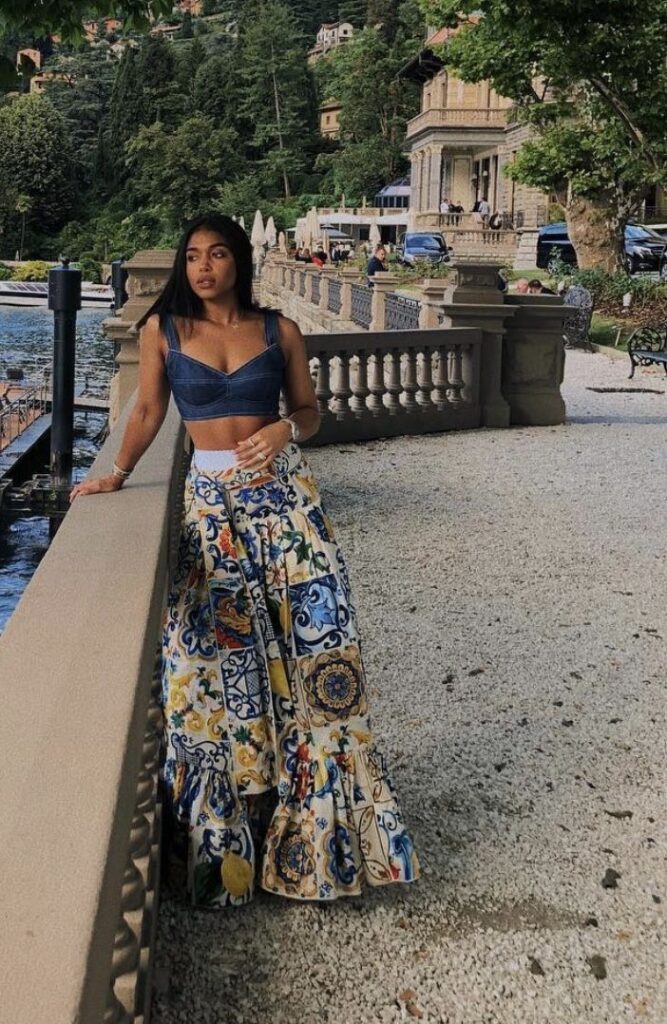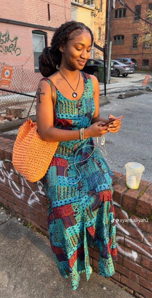Her style features flowy silhouettes, bold prints, crotchet tops, vintage finds, and layers upon layers of accessories that somehow all work together. Maxi skirts, fringe bags, floral prints, and stacked rings? That’s her thing. She’s the queen of mixing patterns others wouldn’t dare attempt, and yet somehow, she makes it look effortless. Think Solange Knowles, Jhene Aiko, or early Erykah Badu vibes.