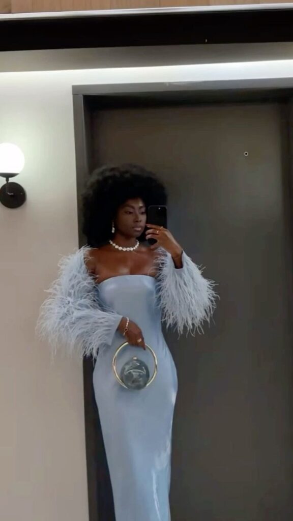 She’s bold, captivating, and confident, and her outfits scream, “I’m here!” Think bold silhouettes, sequins, fur coats, metallics (with the eye shadows to match), and statement jewelry. She’s not shy about taking up space and in her world, the more drama, the better Mariah Carey and Cardi B live in this glamorous lane.